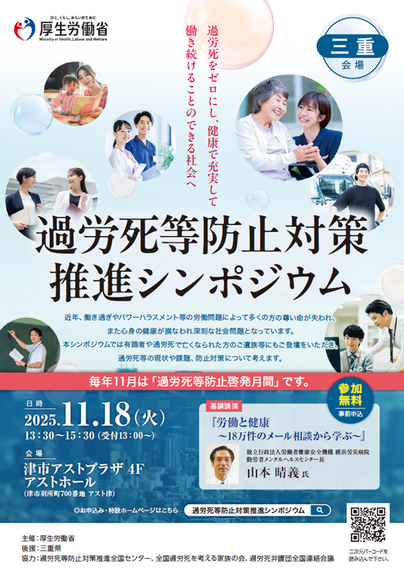 厚生労働省より、過労死等防止対策推進シンポジウムのご案内がありました。