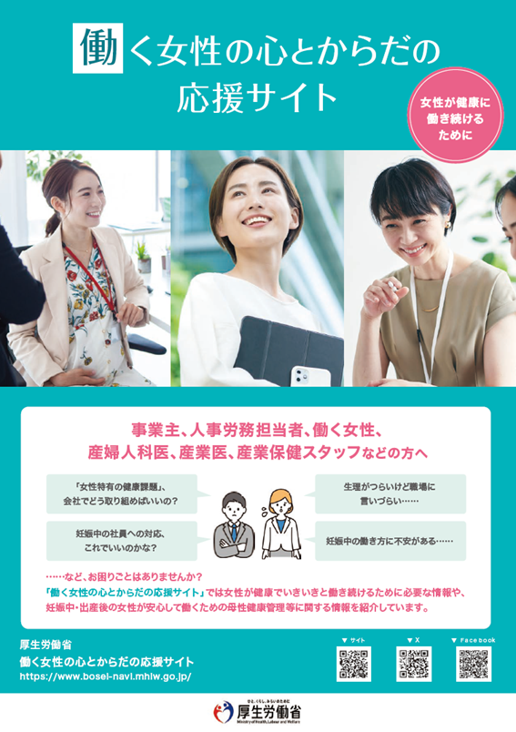 いずれの資料も、厚生労働省「働く女性の心とからだの応援サイト」内「パンフレット・リーフレット等」からダウンロードいただけますのでご活用ください。